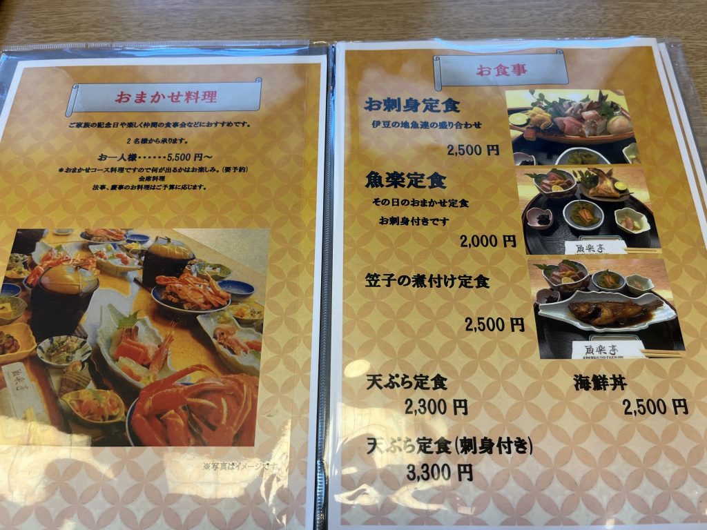 私達はランチで伺ったので、私は「お刺身定食」、妻は「魚楽定食」を注文しました。