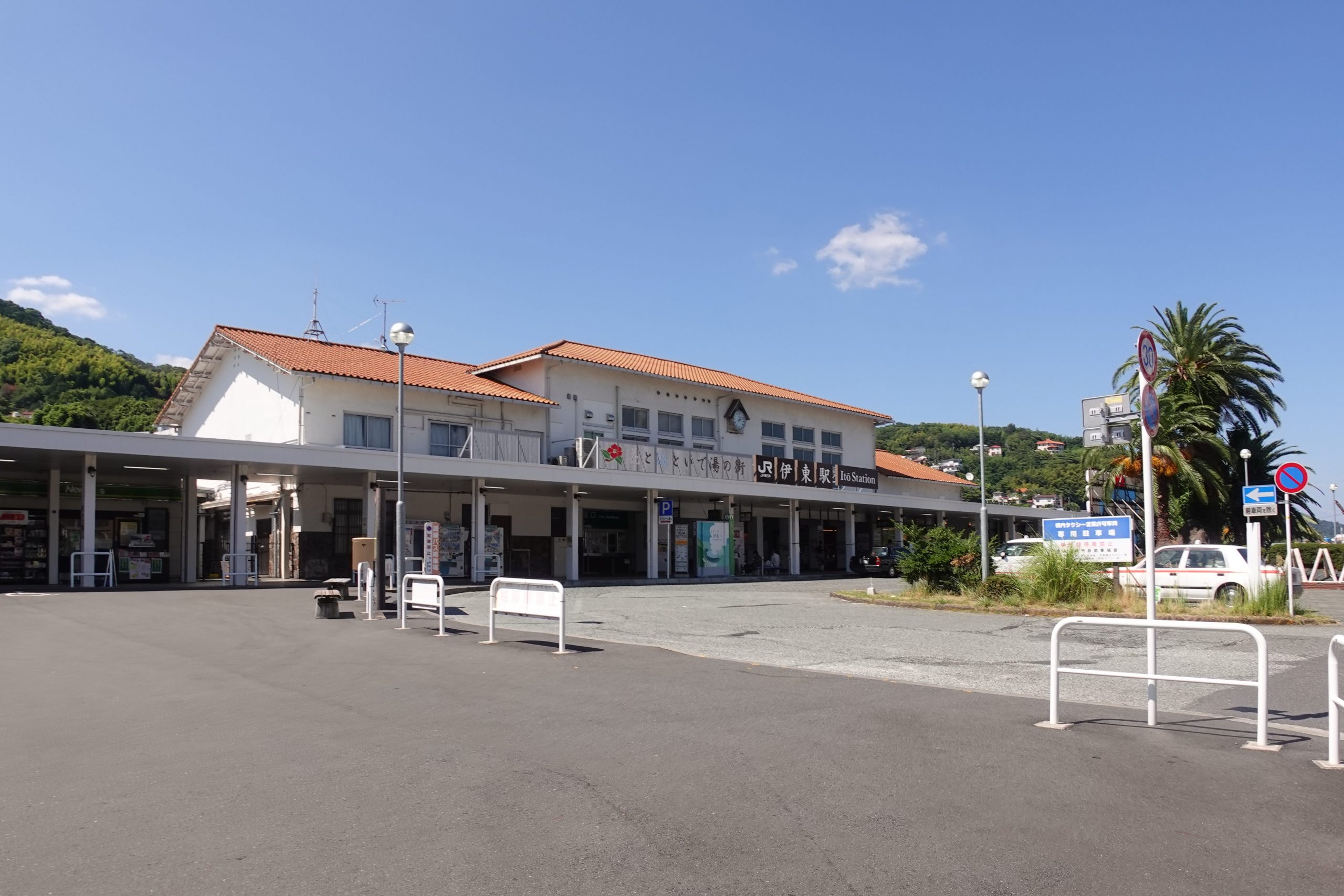 レトロな商店街を通り抜けると見えてきたのが、昭和な雰囲気を感じさせる駅舎の「伊東駅」です。