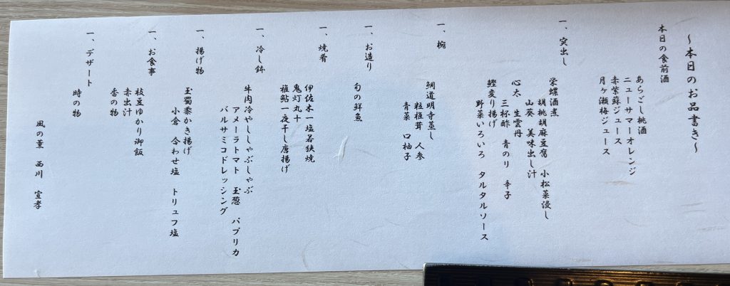 肝心な夕食メニューは、飲み放題付きプランで以下のコースでした。