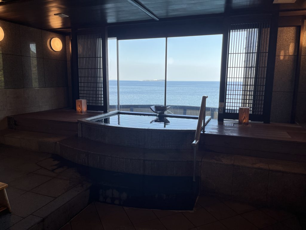 露天風呂は明るい時であれば、海が一望でき絶景ですが、夜は何も見えないので注意です。