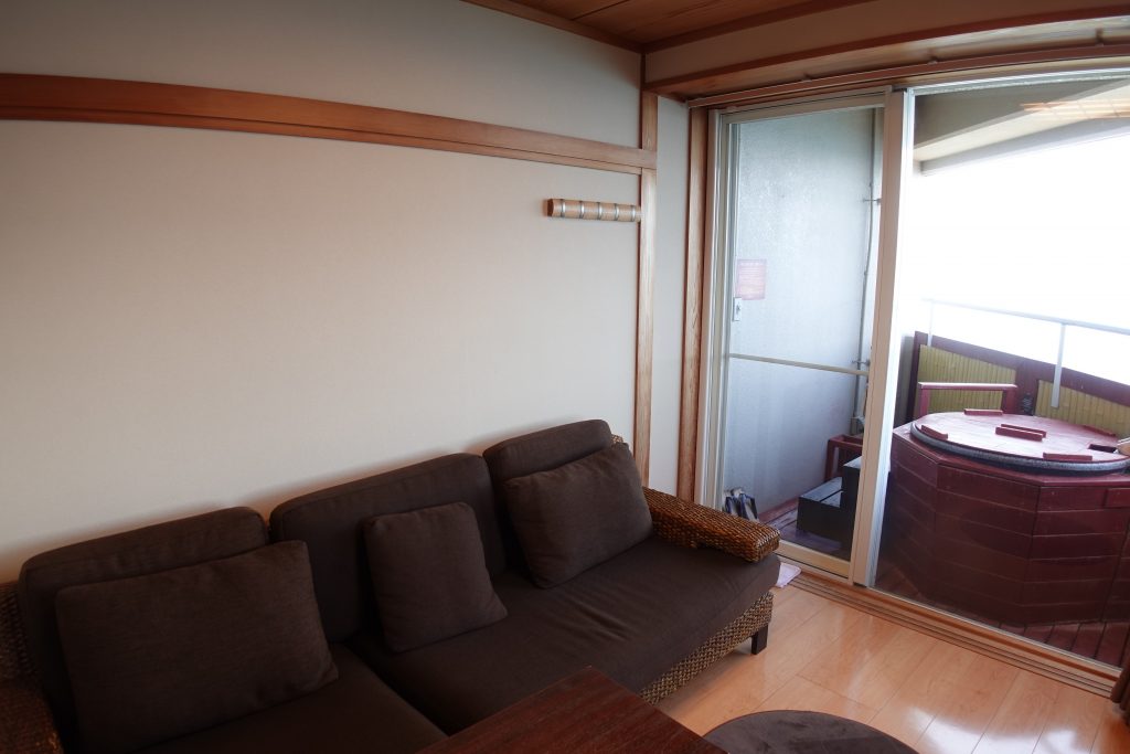 今回宿泊した部屋は、海が一望できる露天風呂や檜の内風呂が付いた「クイーンダブル2間」に宿泊しました。