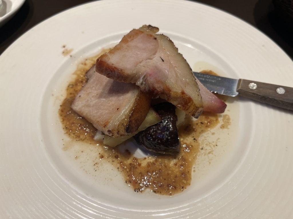 そして、ランチのメインとなる肉料理(ポークハラミの煮込み料理)と魚料理(真鯛のポワレ)が届きました。